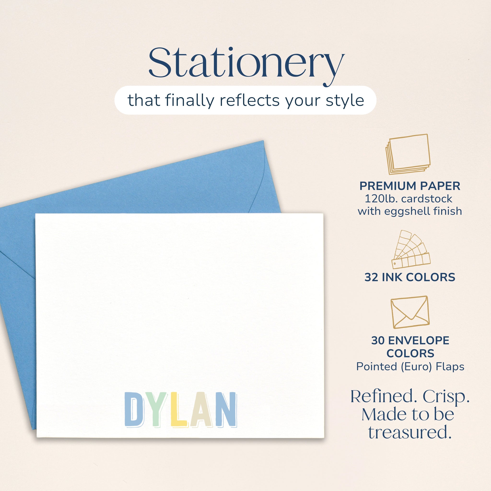 These personalized, rainbow name notecards are 4.25" x 5.5" and come with your choice of envelope color....