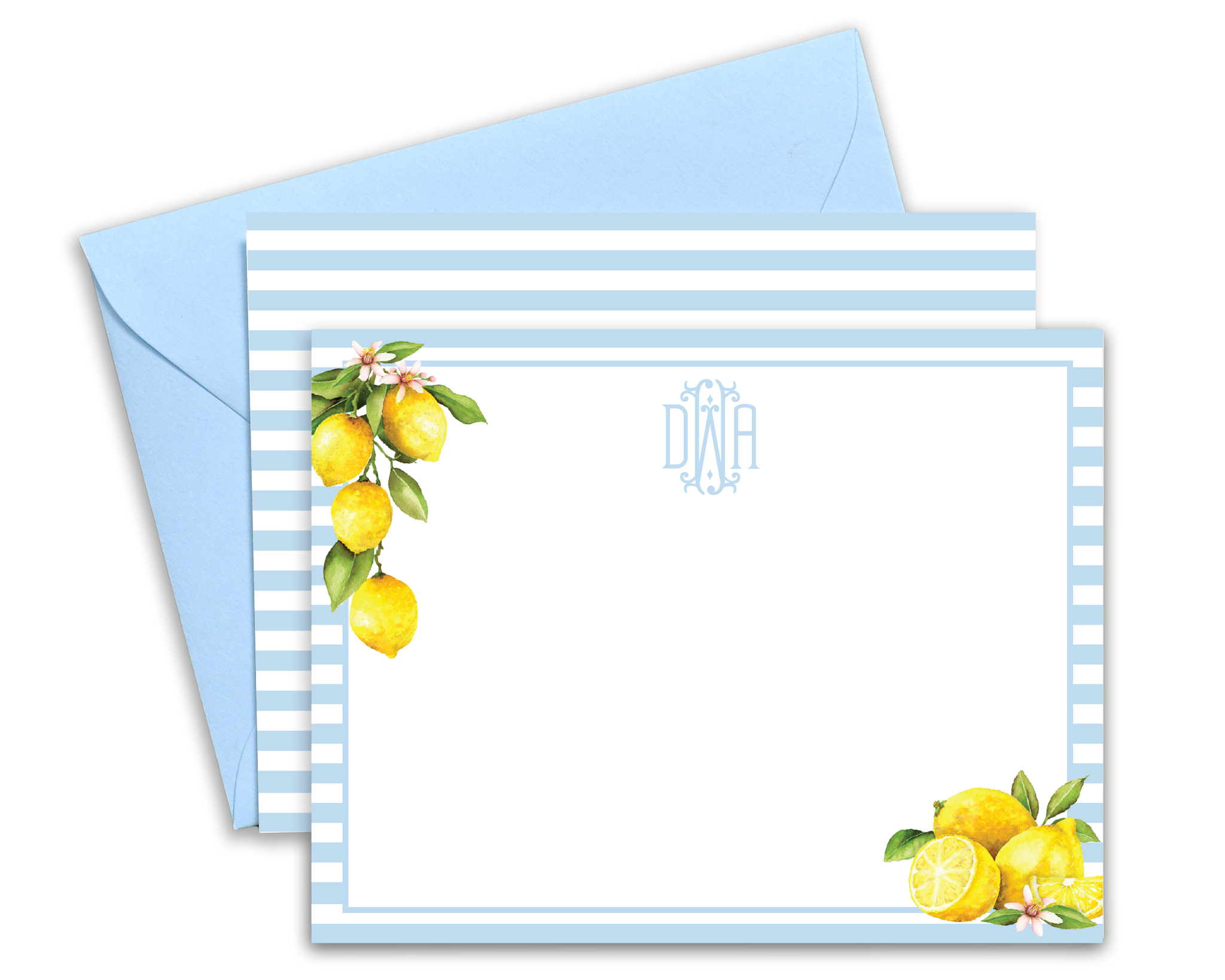 These personalized, watercolor lemon notecards are 4.25" x 5.5" and come with your choice of envelope...