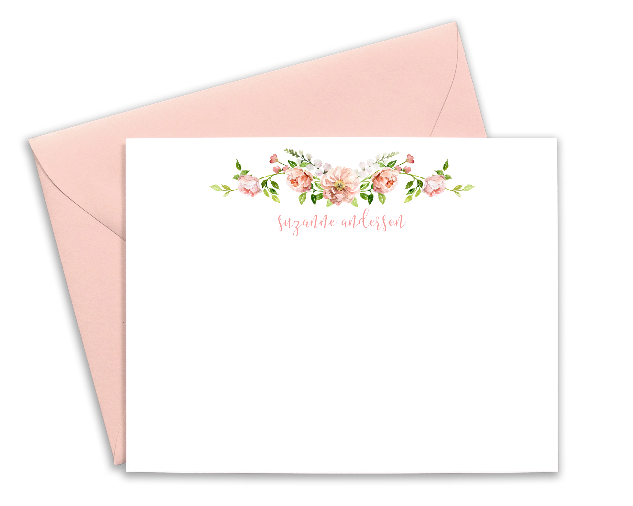 These personalized, blush floral notecards are 4.25" x 5.5" and come with your choice of...