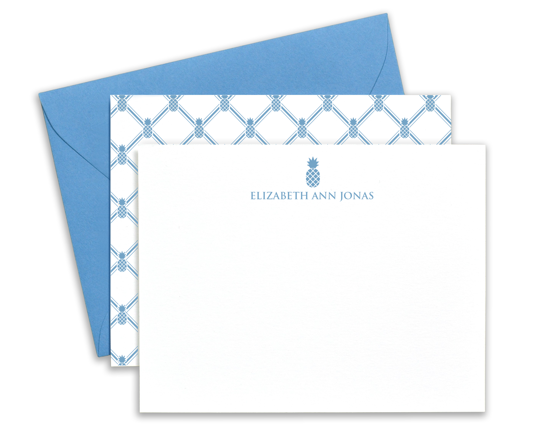 These personalized, pineapple patterned notecards are 4.25" x 5.5" and come with your choice of...